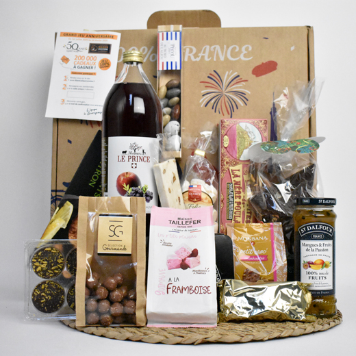 Un coffret raffiné signé par notre cercle de talents : chocolats, biscuits, nougat, guimauves et autres douceurs gourmandes. À l’intérieur, retrouvez aussi notre flyer spécial 50 ans pour participer à notre grand jeu 100 % gagnants !