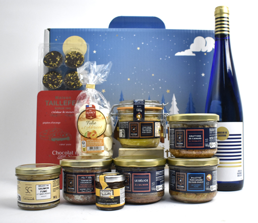 Un coffret plein de chaleur et de gourmandise, où les saveurs du Sud-Ouest se mêlent à la douceur des fêtes. Foie gras, canard, saumon fumé et douceurs sucrées… tout ce qu’il faut pour un moment de partage et de plaisir authentique autour de la table.